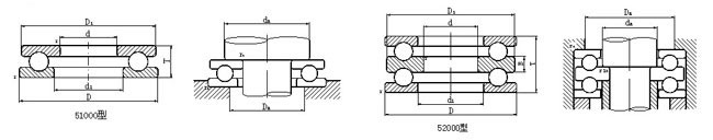 推力球軸承屬于分離型軸承,接觸角為90°,由鋼球(帶保持架)、軸圈(與軸緊配合)和座圈組成,鋼球在軸圈和座圈之間旋轉(zhuǎn)。只能承受軸向載荷,不能承受徑向載荷。由于軸向載荷是均勻地分布在每個鋼球上,故載荷能力較大;但工作時,溫升較大,允許極限轉(zhuǎn)速較低。